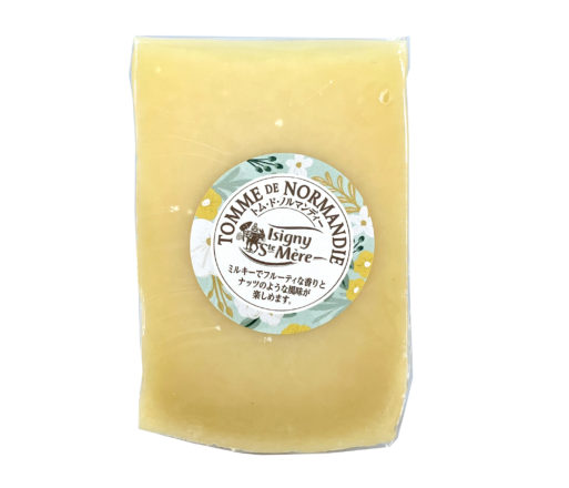 程よい塩味と酸味があり、ミルクの甘味・ナッツのような風味を感じられるチーズ。6ヶ月熟成。アイボリー色で引き締まった組織で、栗のようなほくほくとしたような食感です。トム・ド・ノルマンディーの商品名の由来は、ノルマンディーで製造されているフレンチ・アルプス地方の“山間部のチーズ”に似たタイプのチーズから来ています。